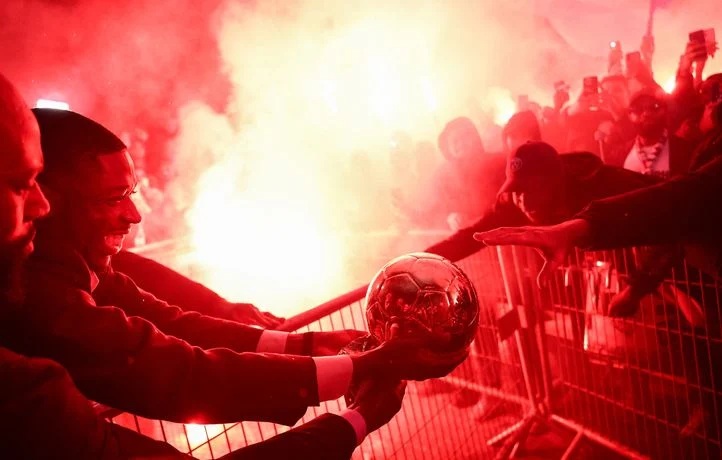 Accueilli en héros, Ousmane Dembélé a présenté son trophée à ses coéquipiers