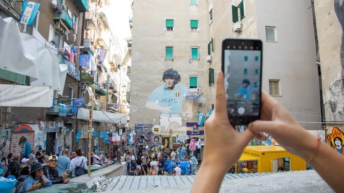 À Naples, en Italie, la «place Maradona», ornée d’une immense fresque à l’effigie du footballeur argentin Diego Maradona, est fermée aux visiteurs depuis le mardi 14 octobre.